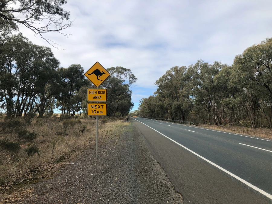 Kangaroos, especially, are most active early in the morning and around sunset, which is why speed limits and warnings are taken seriously.