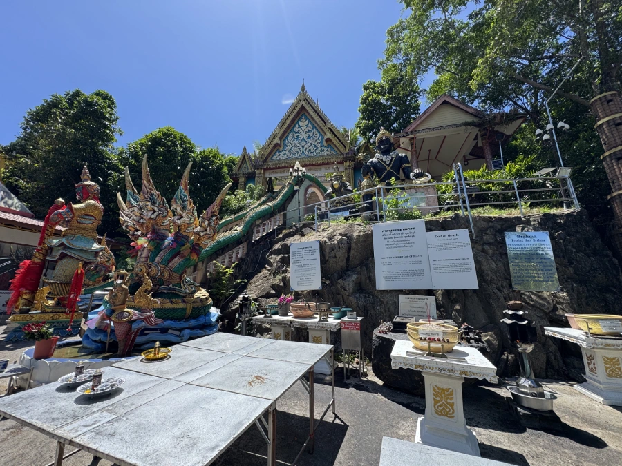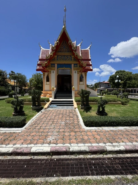 One of the temples I visited in Phuket was Wat Phra Thong. Known for its half-buried Buddha statue, this temple has a simple but meaningful atmosphere. The surrounding buildings, flags, and sculptures give the area a calm and peaceful feeling.