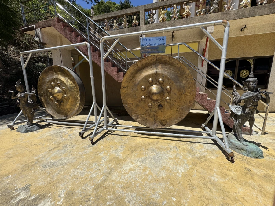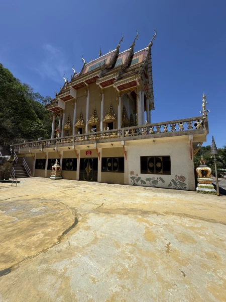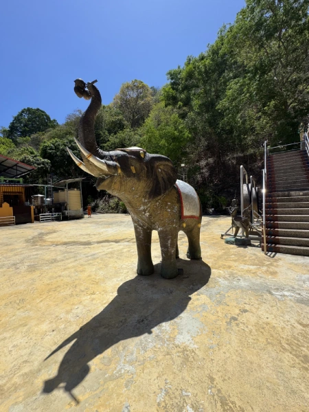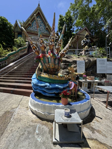Another stop was Wat Khao Rang Samakkhitham. From the entrance, you climb stairs leading up the hill, where you encounter statues, elephant figures, and temple structures.