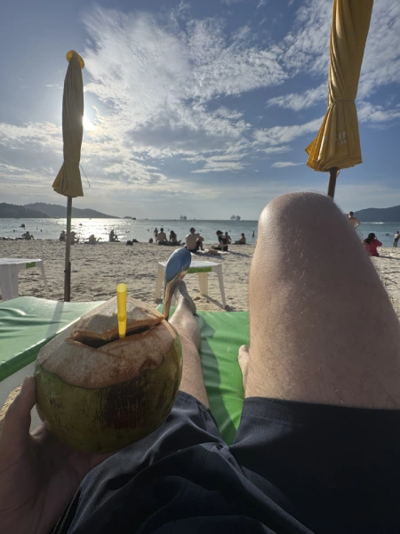When people think of Phuket, beaches naturally come to mind, and Patong Beach is one of the most well-known. It’s busy, lively, and unmistakably touristy. Lying on the beach with a young coconut in hand was one of the calmer moments of the day.