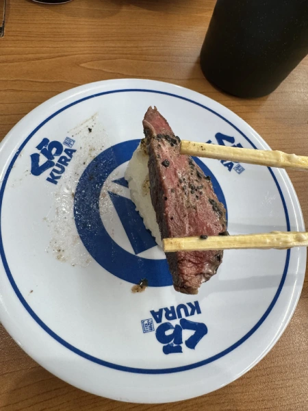 The sushi train experience was completely new for me. Sushi plates move around like a train, and you simply pick what you want as it passes by. The system feels almost robotic, but it’s also fun and very efficient.